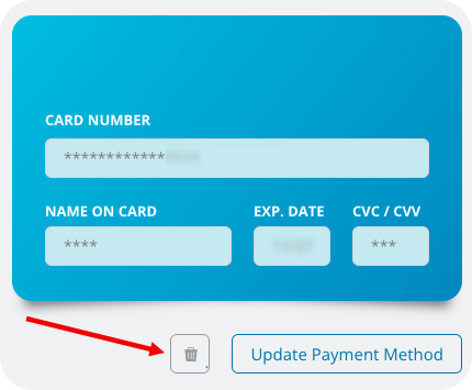 - Click the trash can icon next to the Update Payment Method button.