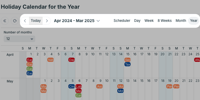 The calendar administrator can configure the number of days for Multi-day view and the number of weeks for Multi-week view.