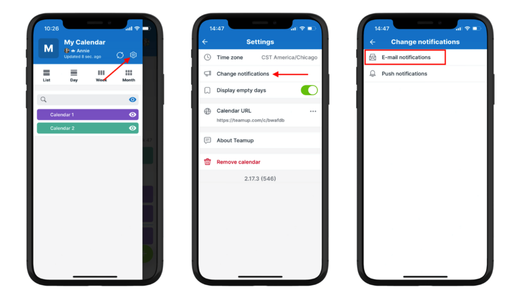You can adjust your notification preferences or unsubscribe from email change notifications via the Teamup app or a browser.